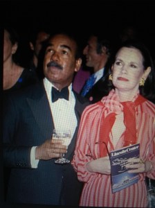 The dinner party numbered around twenty people. And, even though we literally lived just down the corridor, Joe and I predictably arrived late. Dinner had already begun. Bobby got up to welcome us. He was dressed, not in his usual impeccable pin-striped suit but in a flowing white beaded caftan. He drew me to an empty chair next to Bill Paley, the founder of CBS Television. On my other side was Peter Duchin, the popular resident pianist at the St.Regis Hotel’s Maisonette Club. Peter’s wife Cheray Zauderer was seated across from us. Frank Sinatra sat a little further up, on my side of the table, between Gloria and Bill Paley’s beautiful wife, Babe. There were several other people there, some of whom I recognized, such as society beauty Fiona Thyssen and publicist Earl Blackwell, and others I did not. When we arrived the conversation and the wine were both in full flow.
