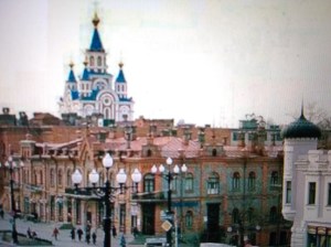 With my new -found freedom, I strolled at a snail’s pace, enjoying the Spring weather and photographing everything of interest along the way. Despite enough warnings, any thoughts of spies, secret police and GRU Intelligence officers couldn’t have been further from my mind. Khabarovsk, I was delighted to discover, was indeed a beautiful city. It could have rivalled any European city with old Colonial-style houses painted in pastel colours, busy sidewalk cafes, wrought-iron street lamps and wide boulevards lined with blossoming trees and shrubs. It’s true that a few ugly Soviet-style buildings were dotted in between the grand houses but the overall impression was of a much gentler city with the turquoise and golden spires of the Russian Orthodox Church, glinting in the morning sun, towering majestically over the rooftops.