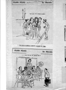“I’ll call you Caroline London!” the principal cartoonist of the Manila Times, Nonoy Marcelo, announced when Betsy brought me to the newpaper’s downtown office on my second day. And true to his word, within a week, there I was easily recognizable as Caroline London, in my Ozzie Clarke robes, waist-length necklaces and flowing blonde hair, incorporated into Nonoy’s daily comic strip, “Tisoy”. And, later in the year, when “Tisoy” became a successful weekly TV series and, eventually, made into a movie, I was given a role in both playing myself as the English hippie, Caroline London.